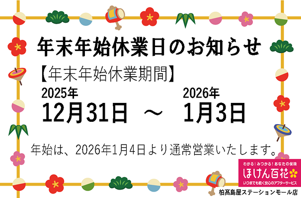 年末年始 休業のお知らせ