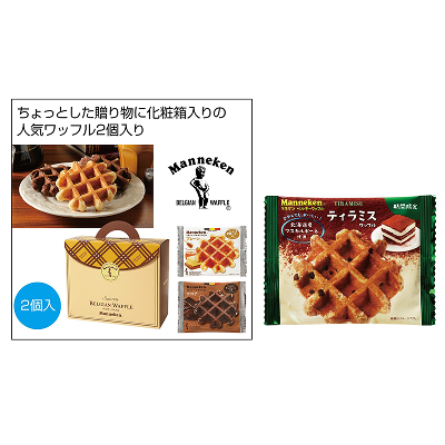 期間中にホームページまたはお電話にてご予約のうえ保険相談にご来店いただいたお客さまにマネケンベルギーワッフル詰合せ2個入+期間限定マネケンティラミスワッフルをプレゼント!