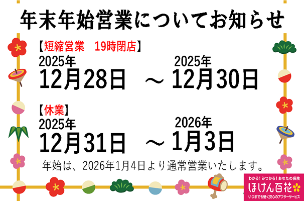 休業期間 2025年12月31日~2026年1月3日年始は、2026年1月4日より通常営業いたします。