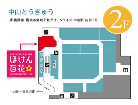 〒226-0019 神奈川県横浜市緑区中山1-4-1 中山とうきゅう2階JR横浜線/横浜市営地下鉄グリーンライン「中山駅」北口 徒歩1分 |